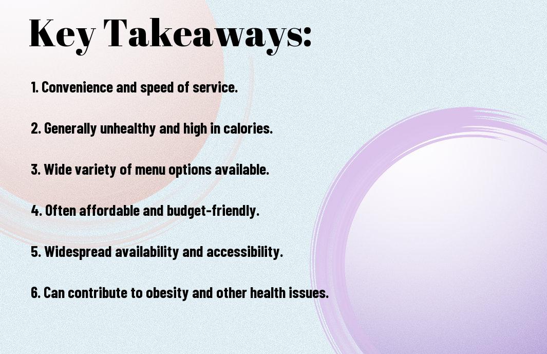 Convenience is the key reason why fast food is popular. You live in a fast-paced society where time is a precious commodity. The quick service, easy accessibility, and affordable prices of fast food make it a go-to option for your busy schedule. In addition, the clever marketing strategies and addictive flavors of fast food options also play a role in their widespread popularity. Understanding these factors can help you make informed decisions about your food choices.