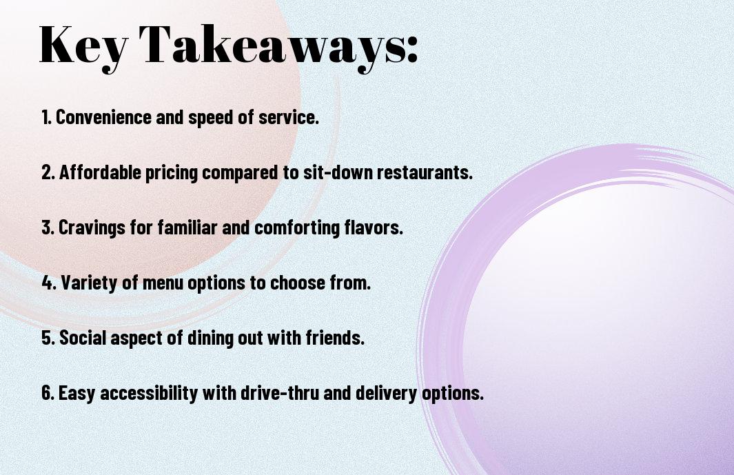 Convenience is the key reason why fast food is popular. You live in a fast-paced society where time is a precious commodity. The quick service, easy accessibility, and affordable prices of fast food make it a go-to option for your busy schedule. In addition, the clever marketing strategies and addictive flavors of fast food options also play a role in their widespread popularity. Understanding these factors can help you make informed decisions about your food choices.